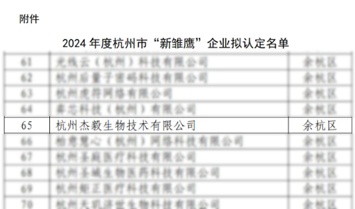 杰毅生物荣膺 2024 年度杭州首批 “新雏鹰企业”