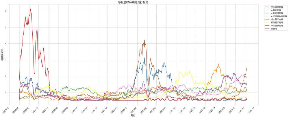 图 4. 杰毅生物呼吸道 RNA 病毒检出趋势