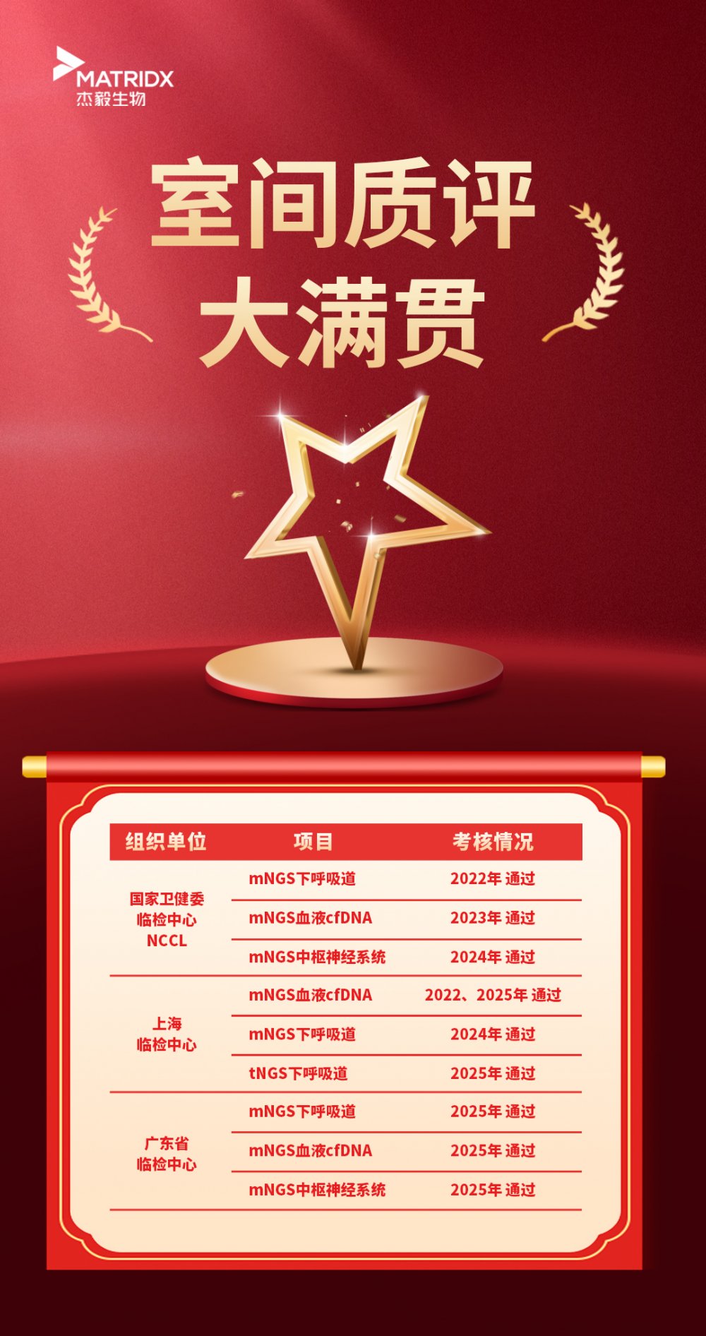 每一份室间质评的高分成绩,不仅是肯定,更是一份敦促我们持续精进的责任。杰毅生物始终秉持初心,践行 “让每位感染患者第一时间获得精准诊疗” 的使命。未来,我们将继续提升检测能力的专业性、精准性与可靠性,致力于成为感染精准诊断领域最值得信赖的合作伙伴。